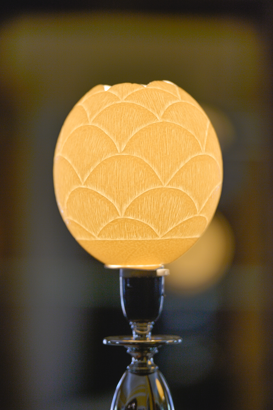 HAND CARVED OSTRICH EGG LIGHT