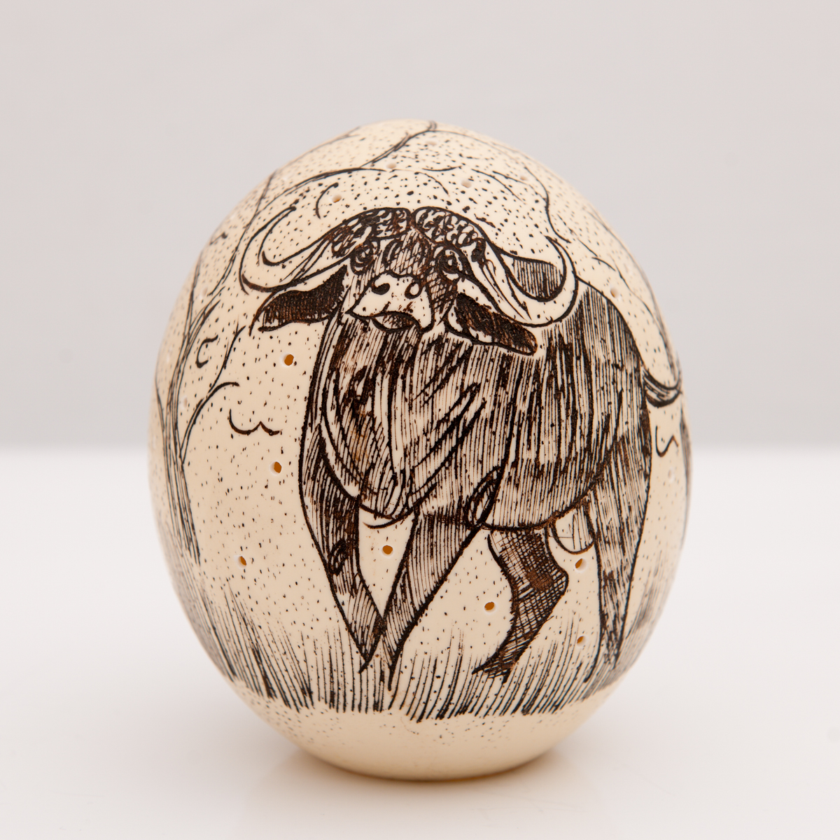 HANDCARVED & painted Ostrich egg