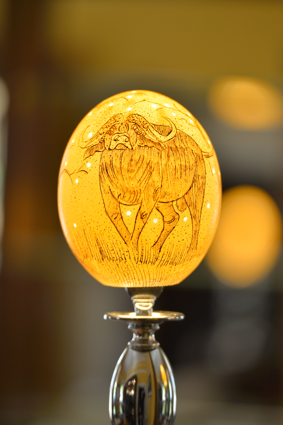 HAND PAINTED & CARVED OSTRICH EGG LIGHT